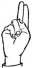 На ћирилици написано ДАРИЈА БАКУЛА састоји се из 12 слова [?]. Исписано ћириличном једноручном азбуком за глувонеме: